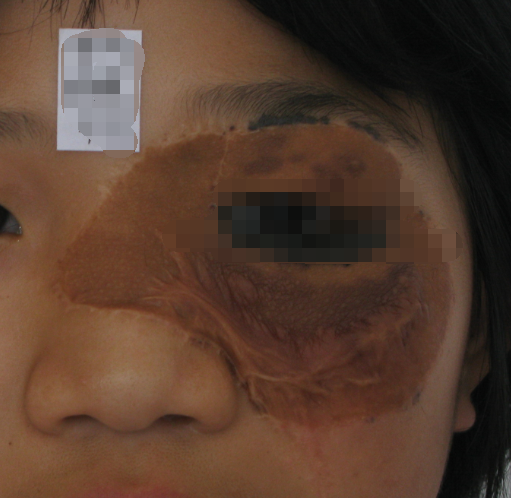 此外,针对面积较大的疤痕,尤其是大面积烧烫伤疤痕,手术切除的话需要移植皮瓣,即从身体正常部位切取游离皮片移植到疤痕创面上,修复创面,恢复肌肤功能。植皮术的不良后果是,植皮部位容易感觉麻木、迟钝,颜色较暗沉,如供皮区是大腿或头皮还会长出毛发。另外,从美观上来说,植皮部位就像是一个“补丁”,达不到患者的美观需求。